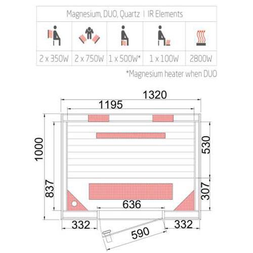 Infrared cabin CHALEUR 132 cm x 100 cm x 200 cm
