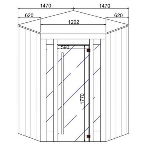 - Tinted safety glass front with door 1770 x 590 x 8 mm including brown hinges / red cedar handle and 2 side windows in 8 mm tempered glass.