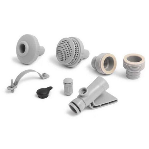 This set consists of an injector and a drain connection for both supply and drain of your pool water, which are connected to the inside of your pool and to the pool pipes that connect to the filter pump.