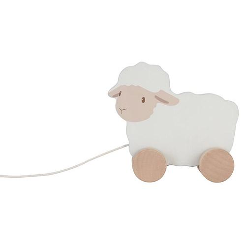 Pull this cute sheep along on the string and he will happily hop along with you.