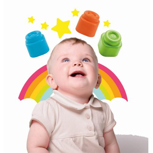 - Soft, colored blocks included. Children can place these blocks in the train, take them out, stack them, and rebuild them.