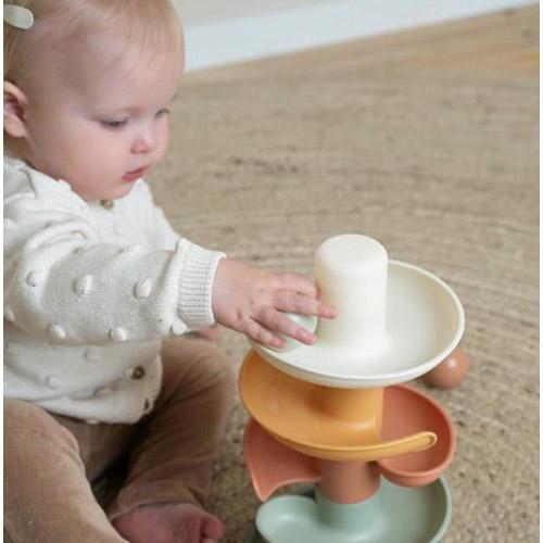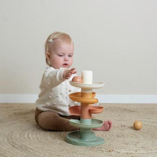 The Spiral Tower helps develop hand-eye coordination and teaches toddlers about cause and effect, making it both fun and educational.