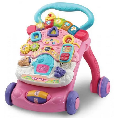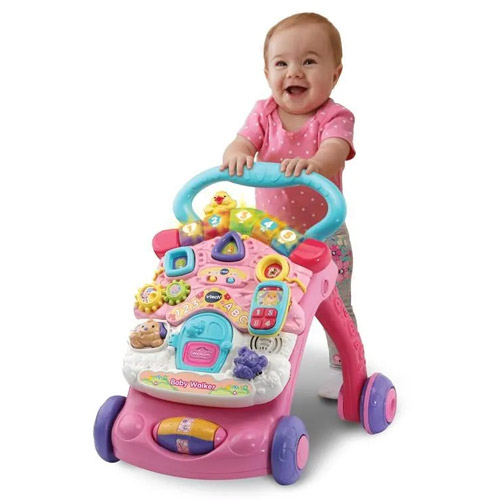 What fun it is to learn to walk step by step, especially with the pink Baby Walker by Vtech.