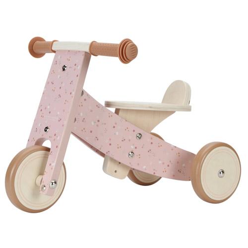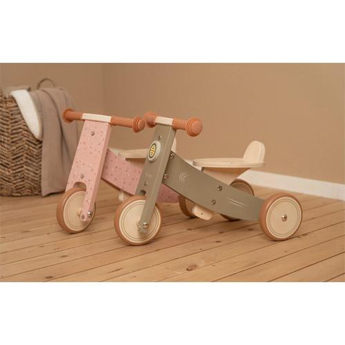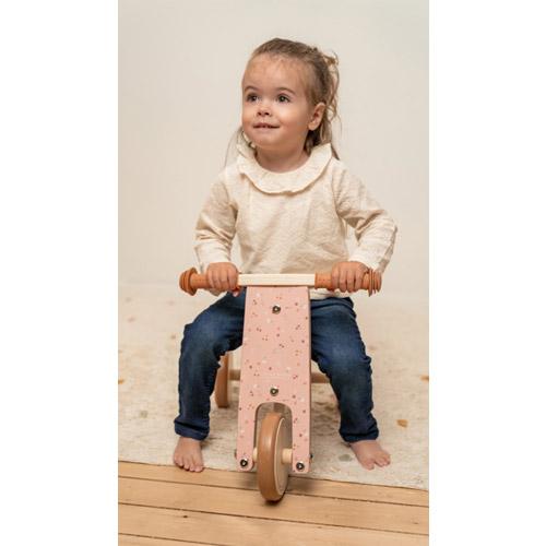 The Little Dutch wooden tricycle in the color pink is a great choice for parents who are looking for a stylish and safe balance bike for their child.