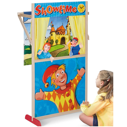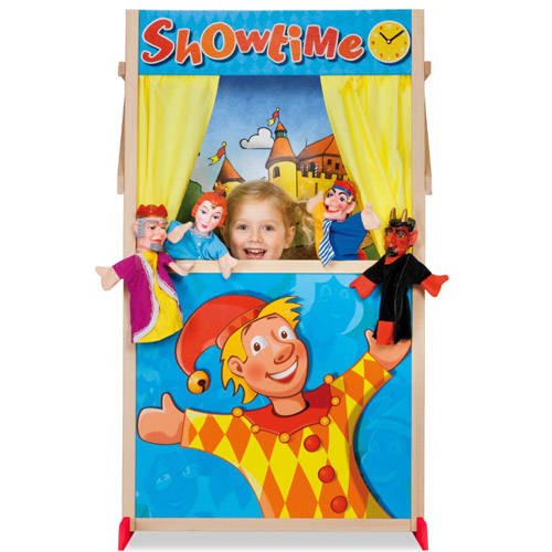 Make up the funniest stories and make your friends laugh with this colourful Eichhorn wooden puppet theatre.