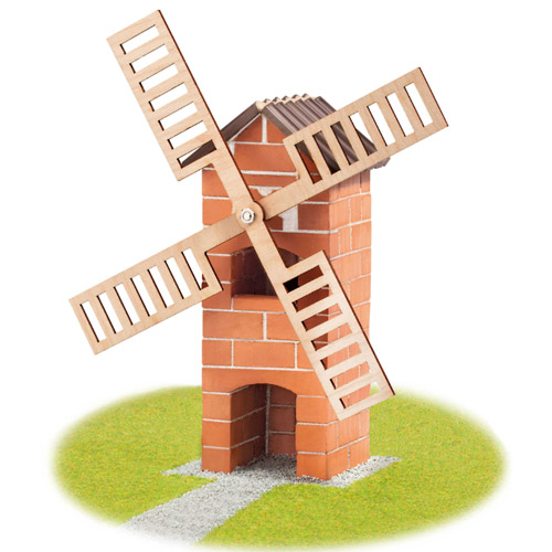 Un moulin à vent à construire soi-même avec des vrais briques et du vrai ciment.