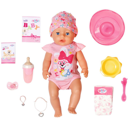 Cette poupée prend son bibron, fait pipi dans sa couche sur sont petit pot, prend des bains et pleure de vraies larmes.