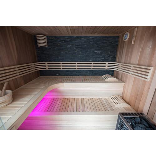 - Les bandes de pierre naturelle sur le mur arrière, choix de 2 types différent.
