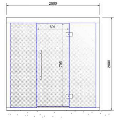 - Face avant en verre trempé transparent de 8 mm, y compris la porte de 690 mm.
