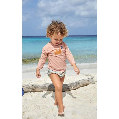 Associée à la crème solaire, à la chemise et au chapeau UV pour enfants de la collection Splash & Fun de LÄSSIG, la couche de natation garantit une baignade sans souci.