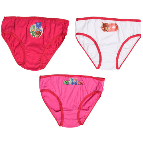 Lot de 3 slips avec illustration des personnages de Pyjamamasques.Couleur: rose, rose foncé et blanc.Disponible en différentes taille.
