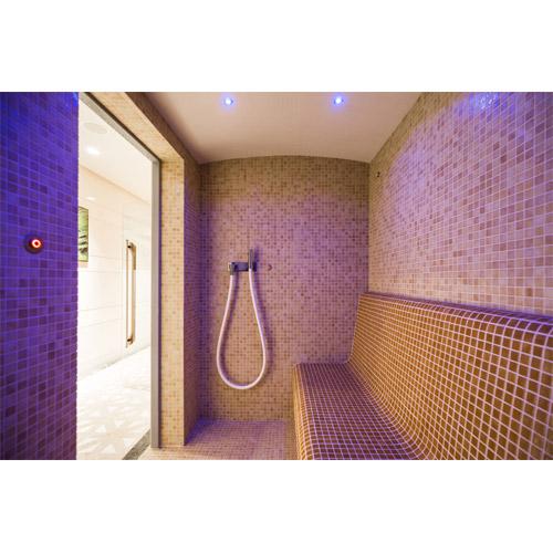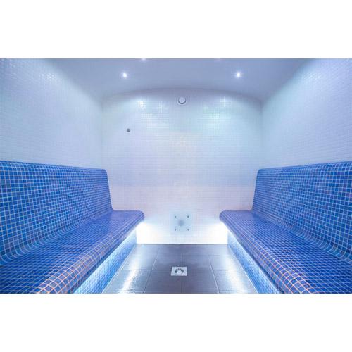 -LED RGB strips onder de banken en 2 LED spots diameter 40 in plafond.