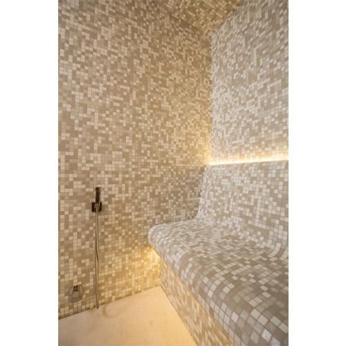 Wanden, plafond en banken, klaar voor tegels en afwerking.