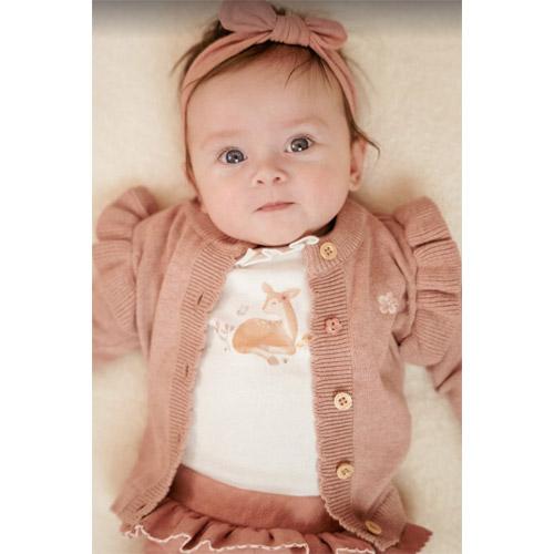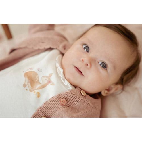 Deze romper is gemaakt van zacht biologisch katoen en is versierd met een betoverende scène uit de Fairy Garden, waarin een hertje geniet van de schoonheid van de bloemen in de tuin.