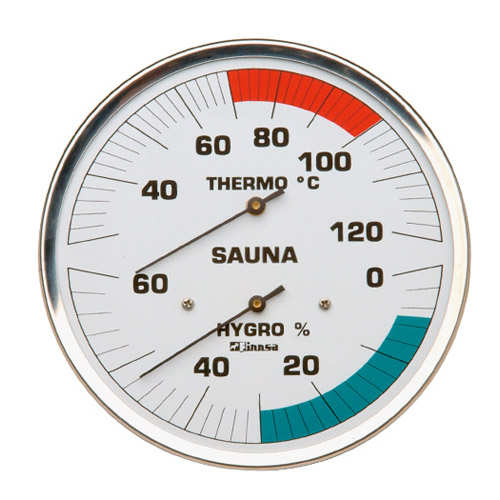 Sauna meetbereik: in contrasterend kleur (thermometer rood en hygrometer groen).