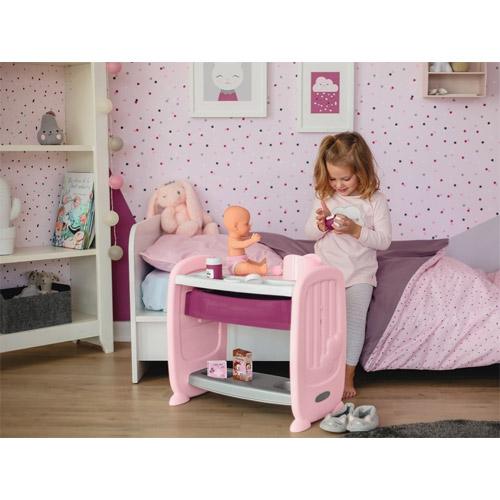 De verzorgingstafel van Smoby Baby Nurse is helemaal wat jouw kleine oogappel nodig heeft: van zodra de billetjes van je schattige pop terug droog zijn, kan de tafel makkelijk omgevormd worden naar een bedje.