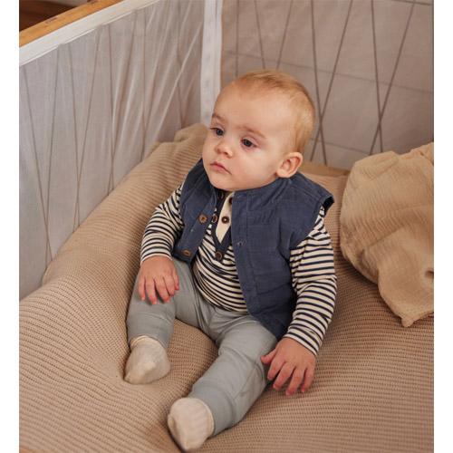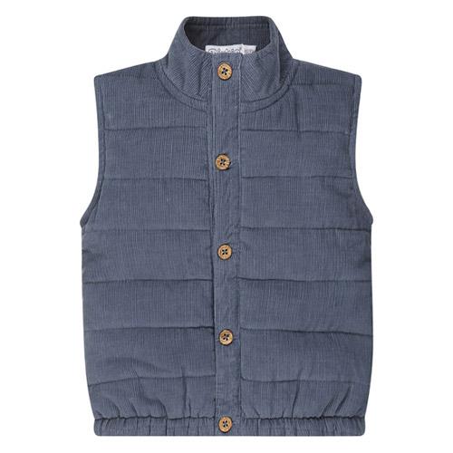 Deze donkerblauwe Dirkje bodywarmer voor jongens voegt net dat beetje extra stoerheid toe aan de winteroutfits.