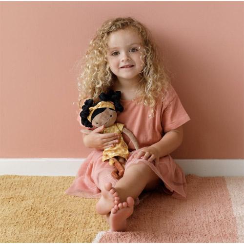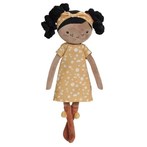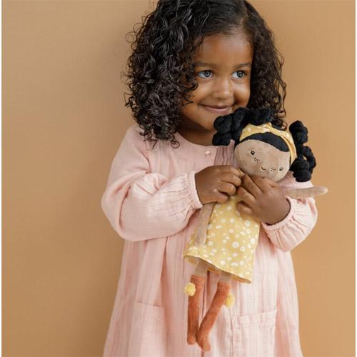 Deze pluche knuffelpop van Little Dutch in een schattig jurkje wil graag geknuffeld worden.