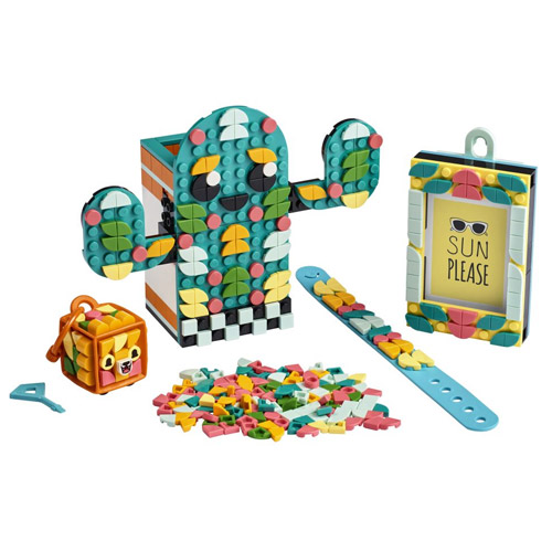 Divers knutselplezier deze knutselset bevat verschillende aanpasbare Dots ontwerpen en kamerdecoraties: een armband, leeuwentassenhanger, fotolijst met ophangelement en een cactuspotloodbakje.