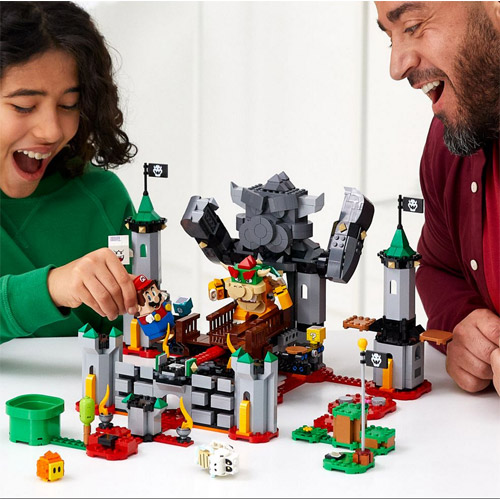 Deze speelset met een kasteel is een schitterend cadeau waarmee kinderen hun Lego Super Mario startset (71360) kunnen uitbreiden en beschikt over torens met ronddraaiende en schuddende platforms, flippers om Bowsers armen omhoog te brengen en toegang te krijgen tot het tijdblok te komen en vervolgens de brug te laten schudden totdat hij omvalt.