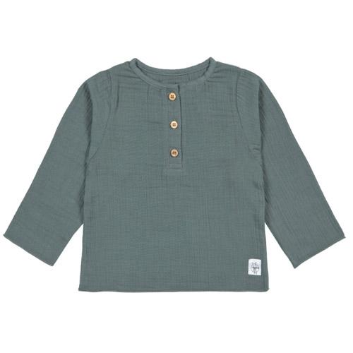 Dit shirt met lange mouwen voor baby's en peuters heeft een mooie knoopsluiting die het kledingstuk niet alleen verfraait, maar ook gemakkelijk aan- en uit te trekken maakt.