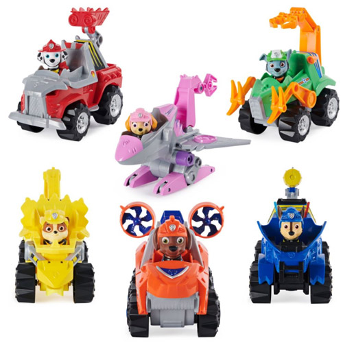 Vertek op avontuur met Paw Patrol Dino Rescue voertuig, speciaal ontworpen voor de Vallei van de Dinosauriërs.