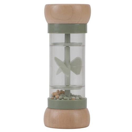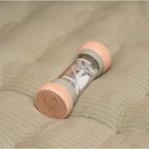 Draai de regenrammelaar om en luister naar de rustgevende druppelgeluidjes van de balletjes die van de ene naar de andere kant van de regenmaker bewegen.