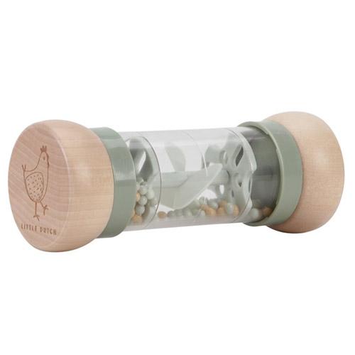 De regenrammelaar is ontworpen voor kleine handjes en ligt lekker in de hand.
