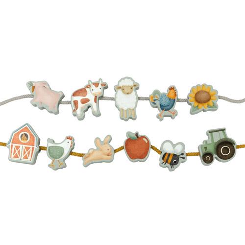 Deze set rijgkralen wordt geleverd met één veter en houten kralen voorzien van de prachtige illustraties van de Little Farm collectie.