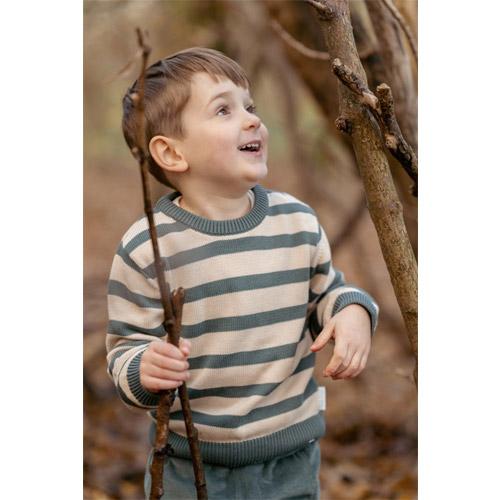 Trui Little Dutch Forest Friends gebreid groene strepen OP=OP