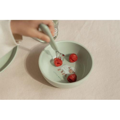 Wanneer je kindje keurig z'n schaaltje heeft leeggegeten komt er een schattig schaapje uit de Little Farm collectie tevoorschijn.