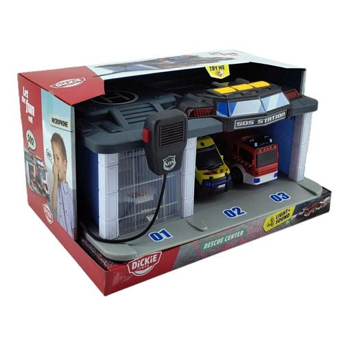 Reddingscentrum: alle reddingswerkers onder hetzelfde dak Het Dickie Toys Rescue Center is het perfecte cadeau-idee voor alle fans van hulpverleningsvoertuigen.