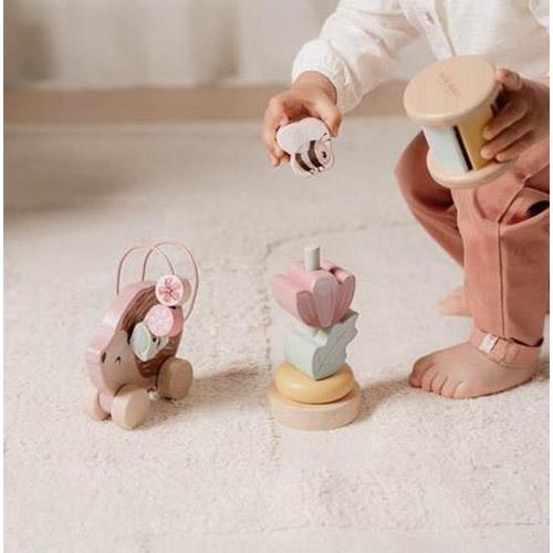 Een prachtige stapelaar om blokjes op te stapelen tot een grote bloem met een lieve bij er bovenop.