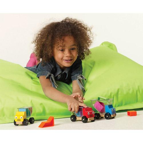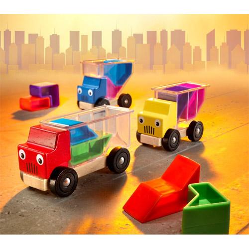De allerkleinsten gebruiken de vrachtwagens eerst als speelgoedauto's, die ze kunnen vullen,