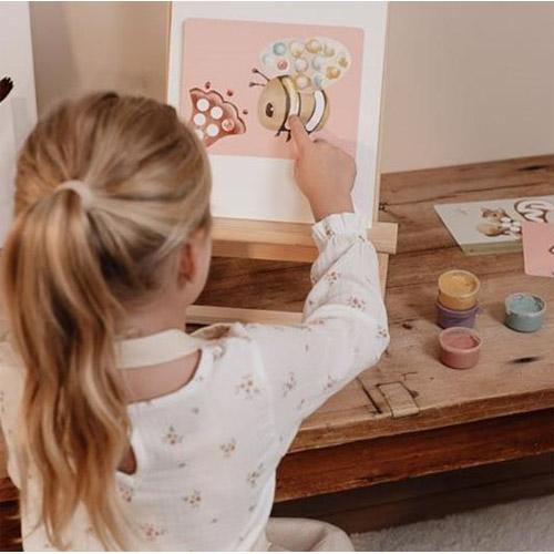 Met vier zachte tinten en schattige voorgedrukte kaartjes van bijvoorbeeld een lieveheersbeestje of een mooie vlinder kan je kindje meteen aan de slag om de mooiste kunstwerkjes te maken.