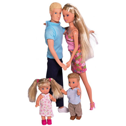Afmetingen van de poppen: Steffi 29 cm, kevin 30 cm, Evi 12 cm en Timmy 12 cm.