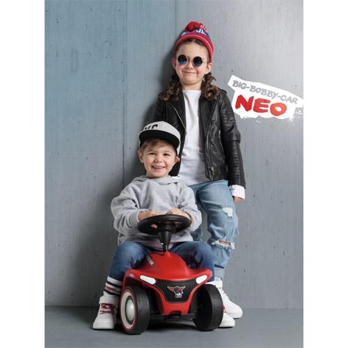 Met de BIG Bobby Car Neo presenteert BIG een nieuwe generatie van zijn rode klassiekers, die vele jaren kinderen heeft begeleid en geïnspireerd.