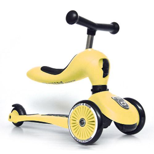 Draai eenmaal aan het zitje en tover deze leuke loopfiets om tot een step.