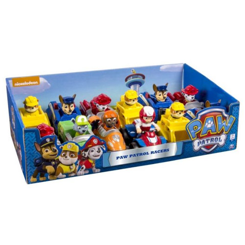 De Rescue Racers voertuigen zijn verkrijgbaar in diverse varianten: Chase, Marshall, Zuma, Rocky, Skye, Rubble, Tracker, Robo-hond, Ryder.