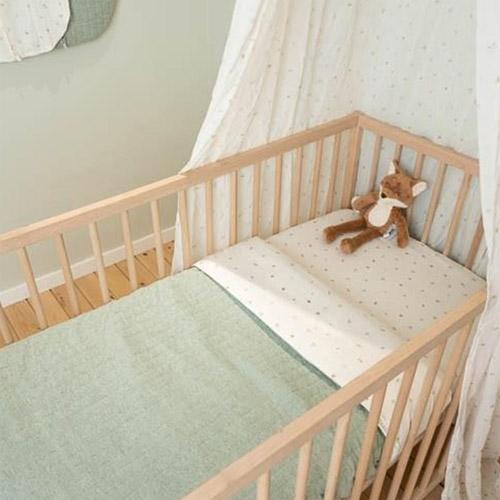 Vouw het laken eenvoudig over een Little Dutch deken om een extra laagje warmte en stijl aan het wiegje toe te voegen.