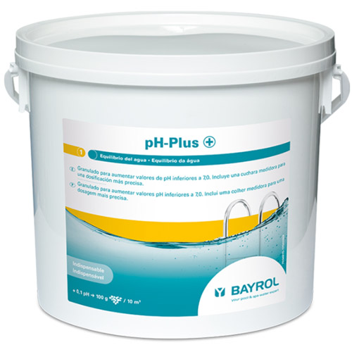 Om de pH waarde met 0,1 te verhogen heeft men 100 gram pH plus per 10 m³ water nodig.