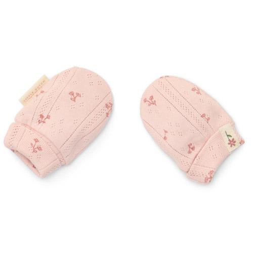 Crafted from soft organic cotton and adorned with a delicate pointelle structure and petite flower print, these mittens offer both style and practicality.