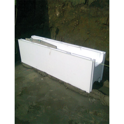 - Lay the first row of polystyrene building blocks in a mortar bed.