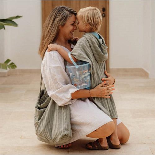 Combine the beach poncho mom bag and take a few of your little one's favorite beach items with you.