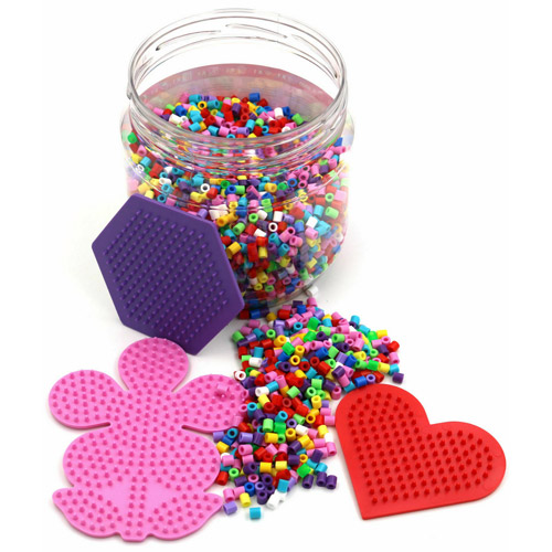 Everything you need is in the jar: 4000 ironing beads, 3 boards (heart, 6-corner and flower), instructions and ironing paper.