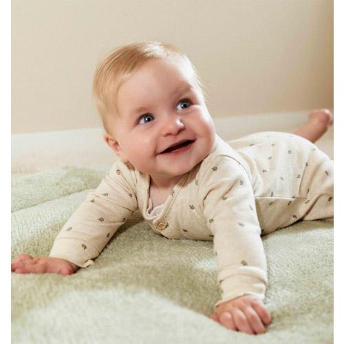 For easy changing and dressing, it has a popper opening at the crotch and wood-look buttons at the front.