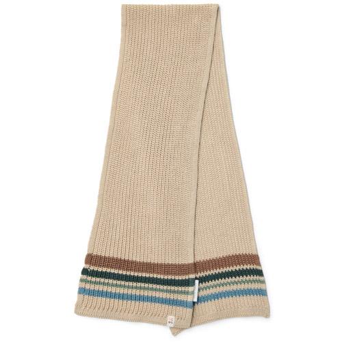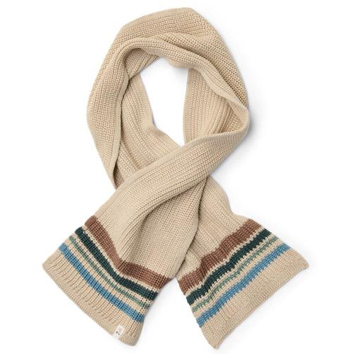 The scarf has a playful touch thanks to the colored stripes at the end.