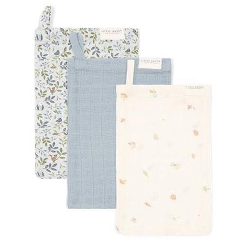 This set of 3 washcloths combines the Forest Friends designs Forest Adventure and Forest Treasures with the plain blue Denim Blue colour.