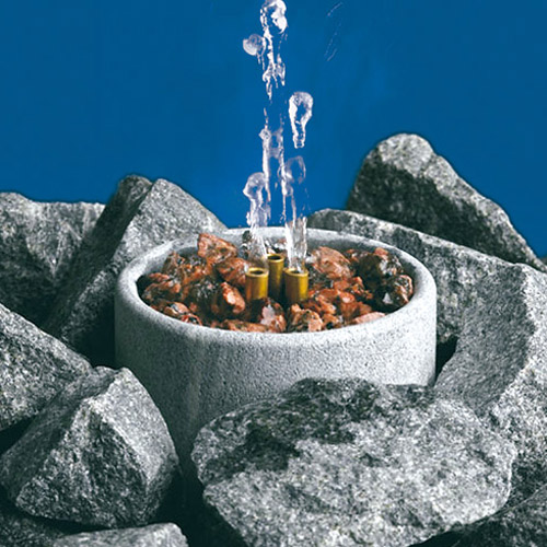 The Saunatroika aroma evaporator is placed between the sauna stones on the stove, the sauna fountain, evaporator is filled with water and aroma.