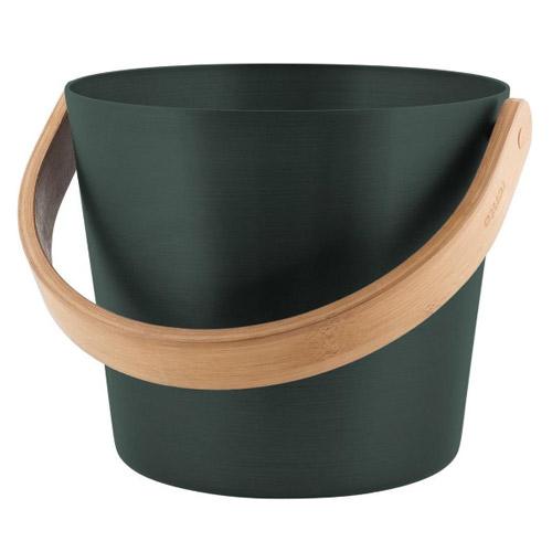 Stijlvolle sauna emmer vervaardigd van geanodiseerde aluminium en warmte-behandeld bamboehout.